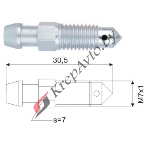 Штуцер прокачки тормозов M7X1.0, L=30.5MM, S=7